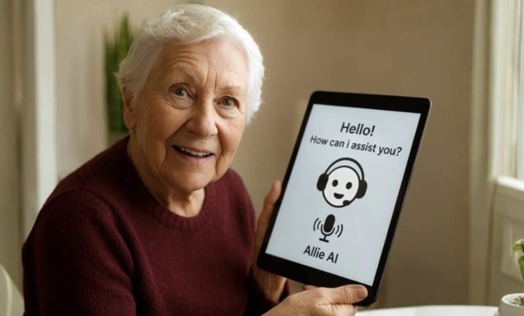 Allie AI is a multilingual, voice-enabled companion designed to support older adults living at home. Through natural conversation, reminders, cognitive exercises, and simple voice commands, Allie helps seniors stay connected, oriented, and emotionally supported throughout the day. It is delivered through an easy-to-use tablet interface — no apps, menus, or technical experience required.